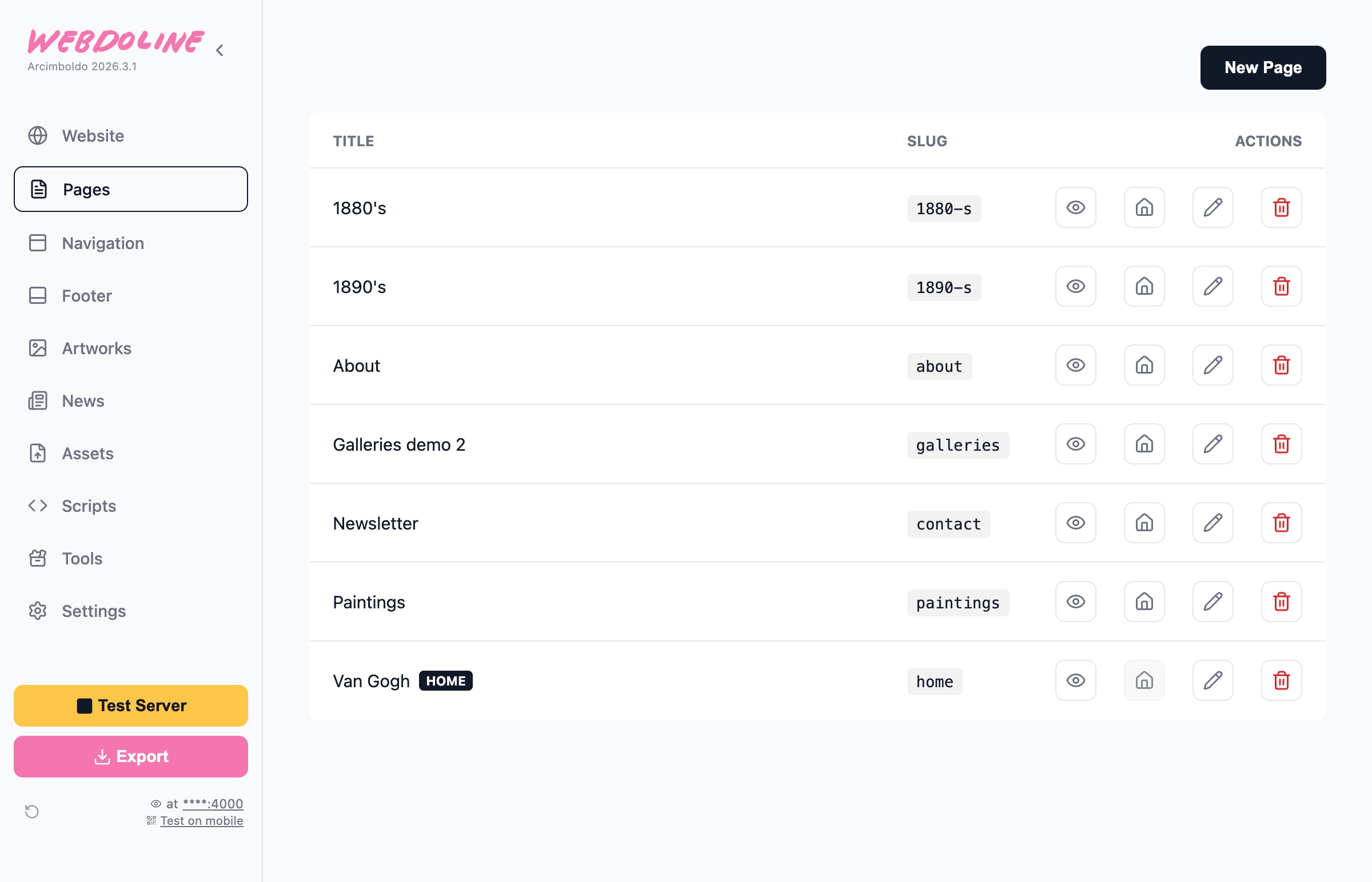 Pages List